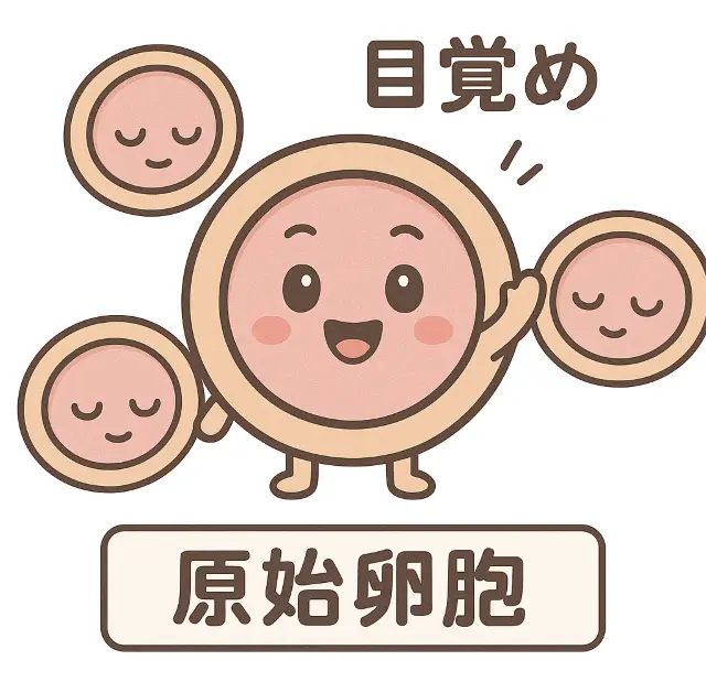 女性の体の中では、まず『原始卵胞』が自発的に目覚めて成長し、1次卵胞になります。この時期は、3か月以上かかります。
