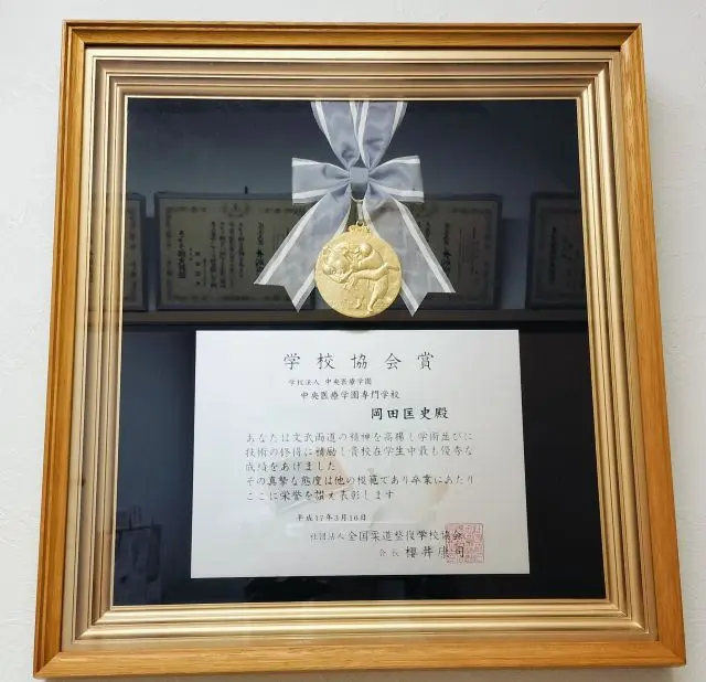 3年間の勉強の後、国家試験にも無事合格し、卒業時には 「学校協会賞」 をいただくこともできました。