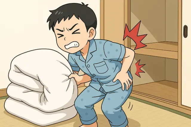 小学生の頃、布団を押し入れに入れようとした際に、「ギクッ」と電気が走るような腰痛が起こりました。