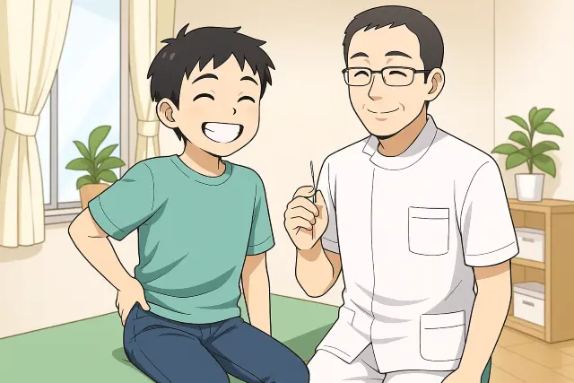 鍼を抜くと、腰が伸ばせるようになり、痛みが半分ほど楽になりました。