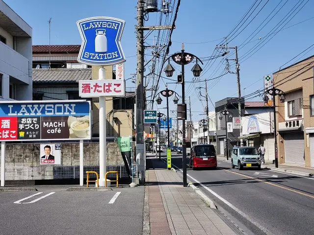 ローソンの看板が見えてくると、もうじきおかだ鍼灸院です。(残り120m)
