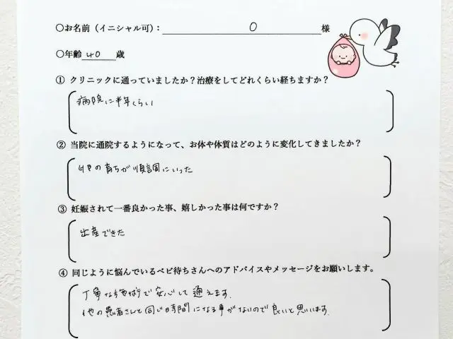最初、私も思っていましたが、こんなに体が変わるなら、もっと早く先生の所に来ていればと思っています。