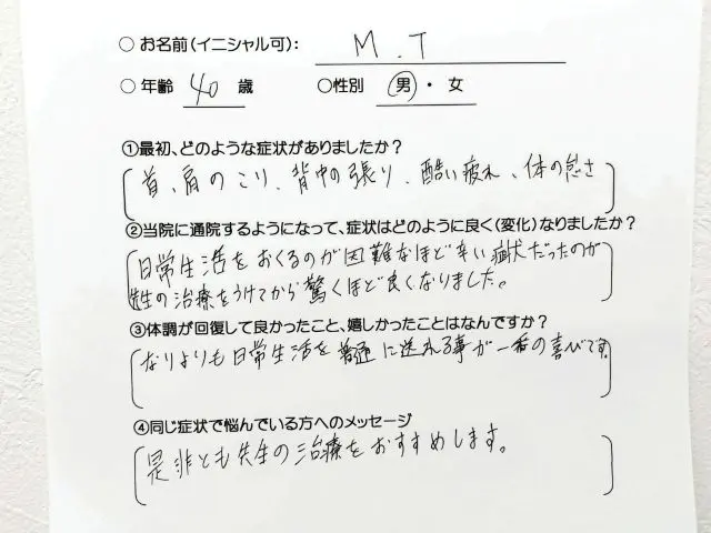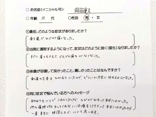 おかだ鍼灸院に通われた皆さまから、実際にいただいた体験談をご紹介します。