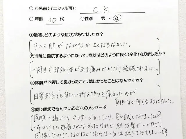 皆様の生の声(3)|慢性疲労・肘・肩・膝の痛み